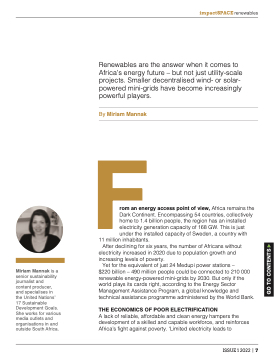 Renewables are the answer when it comes to Africa’s energy future – but not just utility-scale projects. Smaller decentralised wind- or solar- powered mini-grids have become increasingly powerful players.