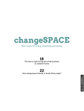 changeSPACE New ways of living, thinking and doing 18 The time is right for big and small business to combine forces 22 How entrepreneur-friendly is South Africa really? GO TO CONTENTS