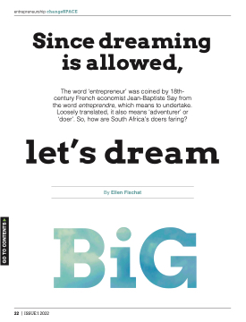 The word ‘entrepreneur’ was coined by 18th- century French economist Jean-Baptiste Say from the word entreprendre, which means to undertake. Loosely translated, it also means ‘adventurer’ or ‘doer’. So, how are South Africa’s doers faring?