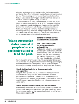 to thrive in the digital economy. Beyond investing in emerging technologies to keep pace with change, organisations must identify and develop the right leadership successors from the ground up