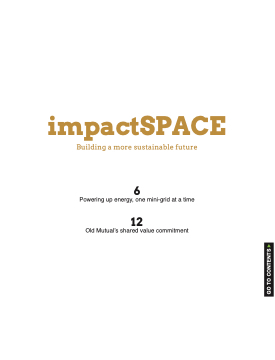 impactSPACE Building a more sustainable future 6 Powering up energy, one mini-grid at a time 12 Old Mutual’s shared value commitment GO TO CONTENTS