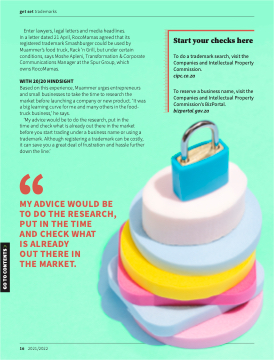 time and check what is already out there in the market before you start trading under a business name or using a trademark. Although registering a trademark can be costly, it can save you a great deal of frustration and hassle further down the line.’