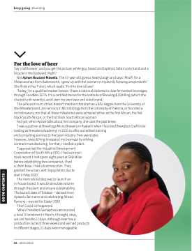 ‘Today, I’m a qualified master brewer. I have a national diploma in clear fermented beverages through FoodBev SETA. I’m a certified trainer for the Institute of Brewing & Distilling (which she chaired until recently), and I own my own beer and cider brand.’