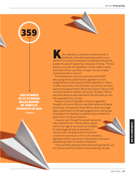 Africa programme, adds that the regulation is more straightforward and transparent than elsewhere in Africa. ‘In other countries on the continent, you can be running a startup and a government official who doesn’t like you will come and place an arbitrary tax on you. At least in Kenya you know what you are supposed to do and what you are not supposed to do,’ he says.