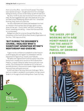 ‘My father and I agreed that he would supply most of the honey from Limpopo and I would run the business from Pretoria. Limpopo allows for better honey yield and more variety. This is because the macadamia nut, lychee and avocado farmers in the province create a bigger demand for bees and their pollination services.’