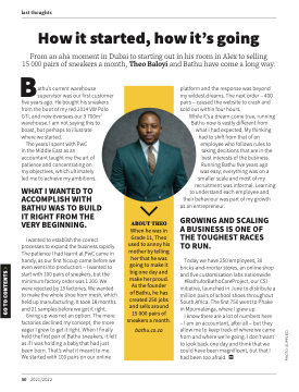 of Bathu, he has created 250 jobs and sells around 15 000 pairs of sneakers a month.