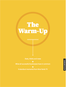 The Warm-Up Stats, titbits and news + What all successful businesses have in common + 9 standout moments from Nine Yards TV GO TO CONTENTS