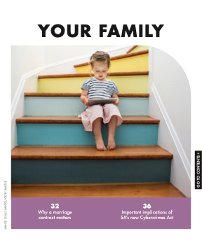 YOUR FAMILY 32 Why a marriage contract matters 36 Important implications of SA’s new Cybercrimes Act IMAGE: GALLO IMAGES/GETTY IMAGES GO TO CONTENTS