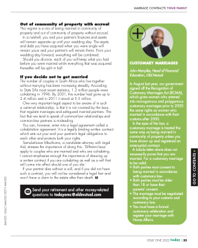 In the eyes of the law, a customary marriage is treated the same way as being married in community of property unless you have drawn up and registered an antenuptial contract.