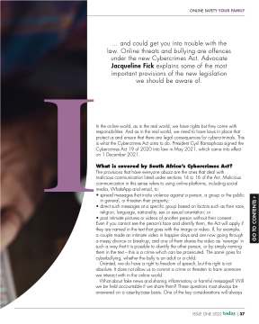 I... and could get you into trouble with the law. Online threats and bullying are offences under the new Cybercrimes Act. Advocate