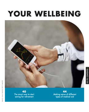 YOUR WELLBEING 40 The smart way to start saving for retirement 44 Making sense of different types of medical aid IMAGE: GALLO IMAGES/GETTY IMAGES GO TO CONTENTS
