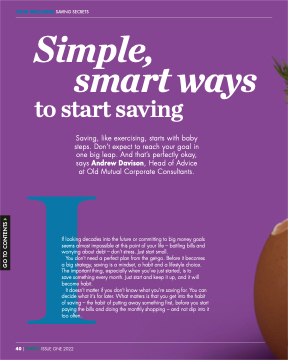 Saving, like exercising, starts with baby steps. Don’t expect to reach your goal in one big leap. And that’s perfectly okay, says Andrew Davison, Head of Advice at Old Mutual Corporate Consultants.