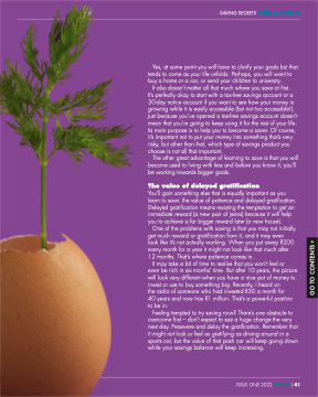 One of the problems with saving is that you may not initially get much reward or gratification from it, and it may even
