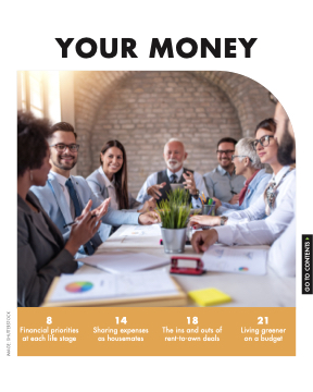 YOUR MONEY 8 14 18 21 Financial priorities Sharing expenses The ins and outs of Living greener at each life stage as housemates rent-to-own deals on a budget IMAGE: SHUTTERSTOCK GO TO CONTENTS